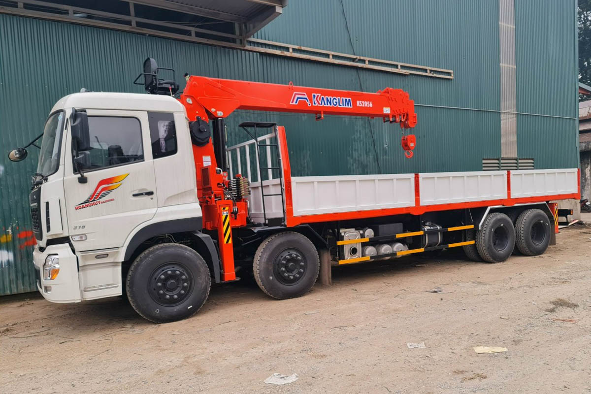 Cẩu được gắn trực tiếp lên khung xe tải, có khả năng di chuyển linh hoạt trên đường bộ phù hợp cho các công việc cần di dời nhanh chóng giữa các địa điểm.